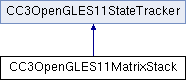 CC3OpenGLES11MatrixStack provides access to several commands that operate on one of the matrix stacks, none of which require state tracking. More...